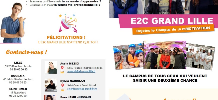 L'Ecole de la 2ème Chance Grand Lille, dite E2C, a pour objectif d'assurer l'insertion professionnelle durable des jeunes volontaires et motivés sortis du système éducatif sans qualification.