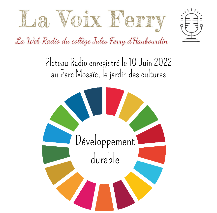 Lors de l'année scolaire 2021-2022, ils ont suivi une série d'ateliers radio pour découvrir les différents formats, puis ils ont travaillé sur le thème du développement durable et ont écrit une émission, enregistrée le 10 Juin 2022 dans les conditions du direct, au Parc Mosaïc.