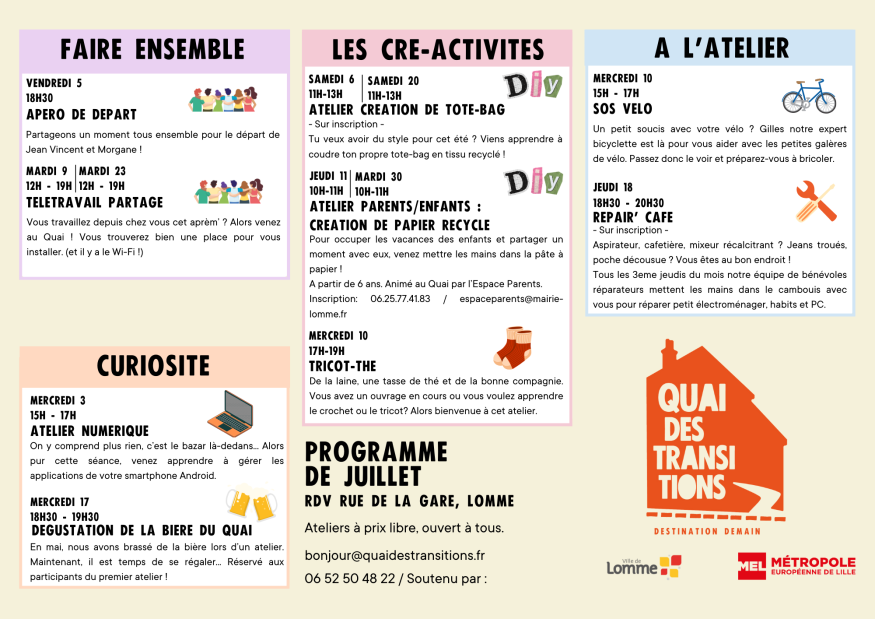 Retrouvez à l'antenne et en podcast, tous les mois, l'agenda des temps forts et ateliers du Quai des Transitions à Lomme.