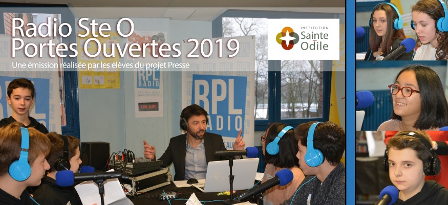 Après plusieurs séances d'ateliers radio, proposées et animées par RPL Radio, les élèves de 4ème du projet Presse du Collège Sainte Odile de Lambersart ont enregistré, dans les conditions du direct, une émission de radio à l'occasion des Portes Ouvertes 2019 de l'Institution Ste Odile.