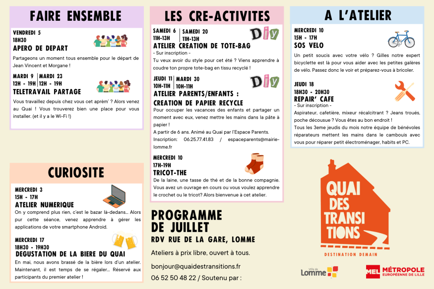 Le Quai des transitions - l'agenda de Juillet 2024
